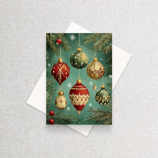 Vintage Christmas Ornaments | Custom Holiday Card Set of 12
