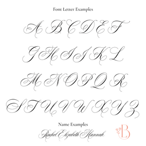3. If you've purchased wedding invitations from Love Blooms, we can match the engraving font to your invites! Make sure to send us a note which invitation suite you chose.