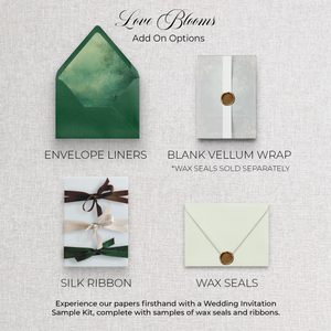 Our invitations are crafted from 120 lb superfine eggshell textured paper, offering a luxuriously tactile finish. For an even more substantial feel, double-thick cardstock is available as a premium upgrade.