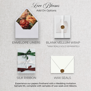 Our invitations are crafted from 120 lb superfine eggshell textured paper, offering a luxuriously tactile finish. For an even more substantial feel, double-thick cardstock is available as a premium upgrade.