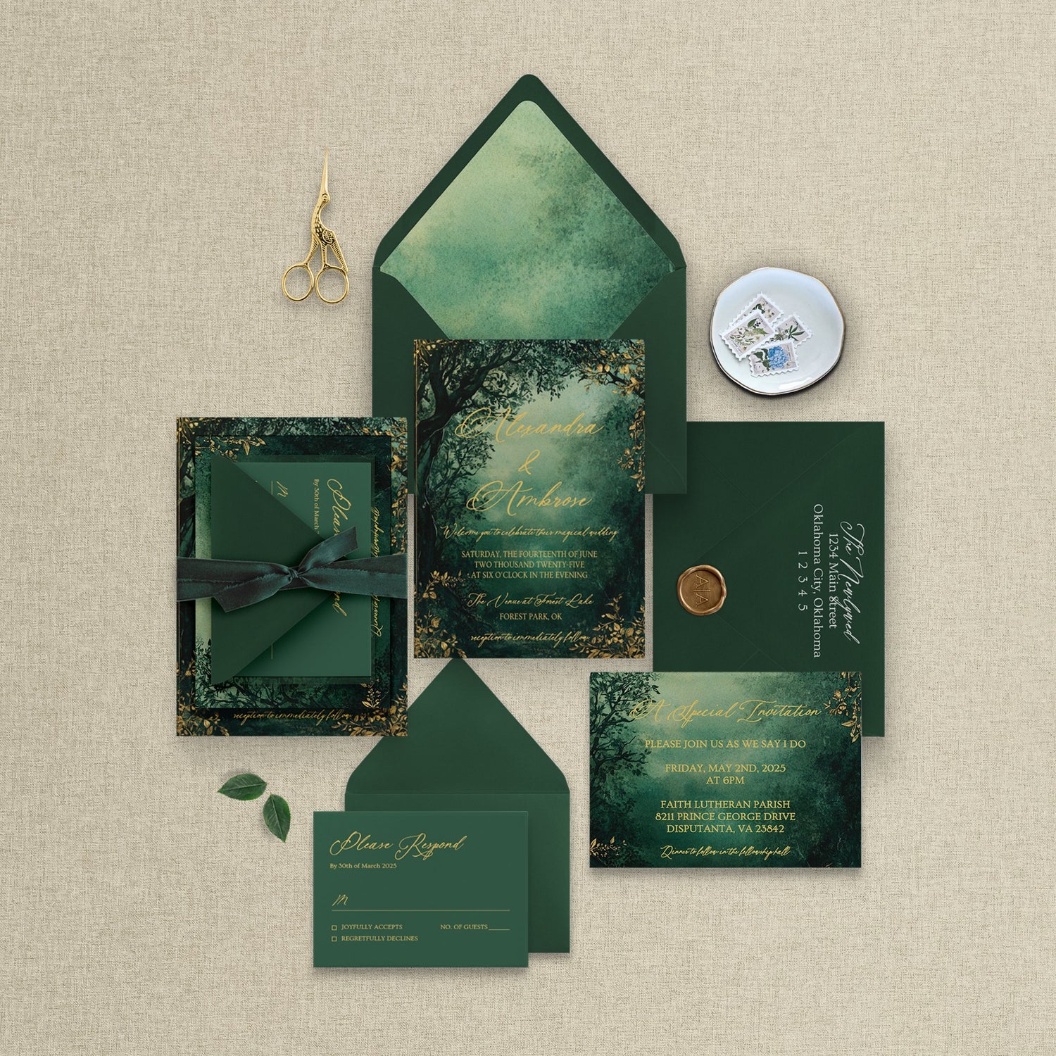 Select your quantity, envelope colors, custom wording, and optional QR codes. Add finishing touches like ribbons, wax seals, and belly bands to make it yours.